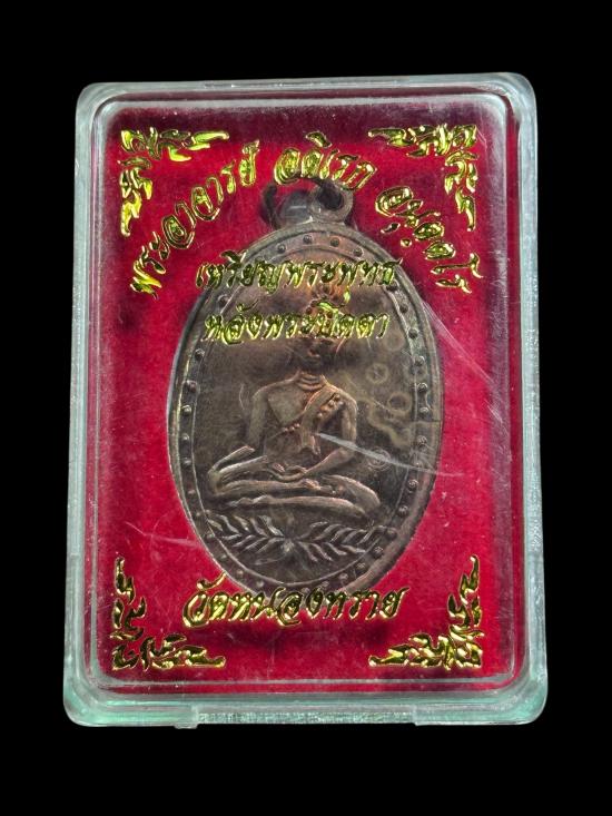 -วัดใจเคาะเดียวแดง- เหรียญพระพุทธ หลังปิดตา พระอาจารย์ดิเรก วัดหนองทราย จ.สุพรรณบุรี ปี2561 เนื้อทองแดงผิวไฟ สวยๆ กล่องเดิม