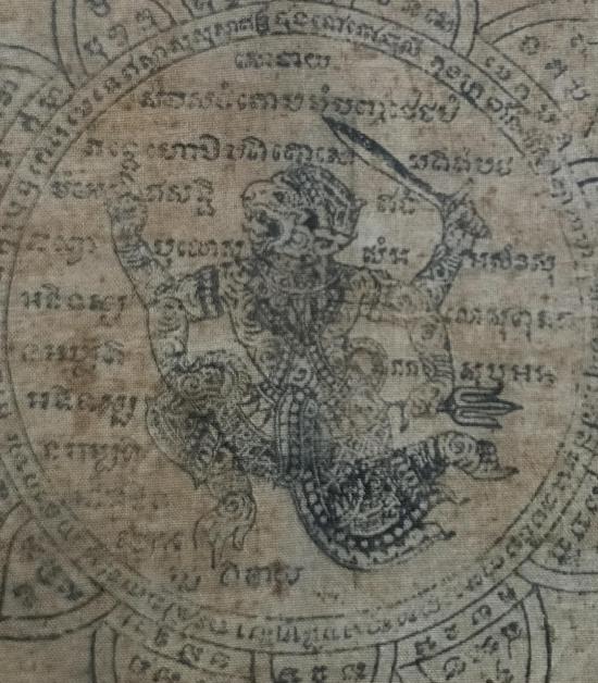 ผ้ายันต์หนุมานสี่กร ขนาด 9 x 10 นิ้ว ใส่กรอบบูชา เก่ามีอายุ ไม่ทราบสำนัก เข้มขลังครับ |