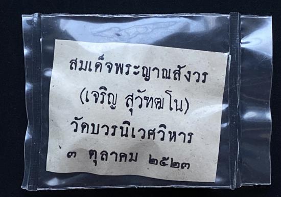 พระปิดตายันต์ดวงเล็ก ปี2523 สมเด็จพระญาณสังวร (เจริญ) วัดบวรนิเวศ_(เนื้อผงใบลานแช่น้ำมนต์)_ซีลถุงเดิม_ |