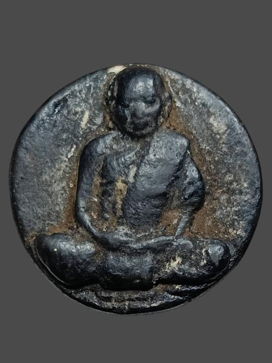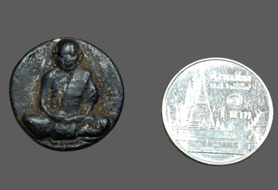 พระพิมรูปเหมือนทรงกลมเนื้อออกคล้ายผงใบลาน เก่าพอมีอายุคับไม่ทราบที่คับ |