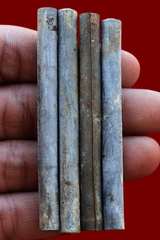 ชุด 4 ดอก...ตะกรุดปราบมารแช่น้ำมนต์มหาว่าน รุ่นแรก เนื้อตะกั่ว ปี 2551 หลวงปู่นิเวศน์ วัดทุ่งกระเจ็ด จ.สุพรรณบุรี พร้อมซองรูปใบฝอยเดิมจากวัด สภาพพระตามรูปที่ลงทุกประการ (ดอกนี้ยาวประมาณ 7.6 8 ซม.)