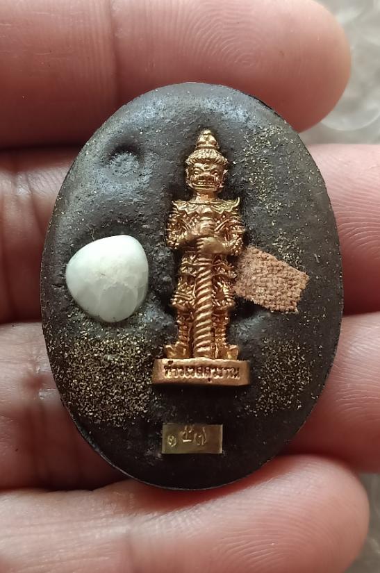 ล็อกเก็ตจัมโบ้ฉากทอง ด้านหลังฝังท้าวเวสสุวรรณ พลอยเสก จีวร ข้าวสารหิน
