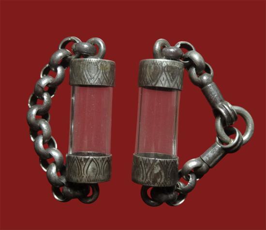 หลอดเงินพร้อมสร้อยเงินใส่ตะกรุดสาริกา สั่งทำอย่างดี 2 อัน รับประกันตามกฏ |