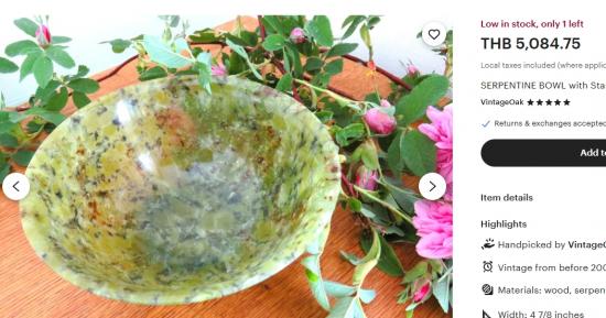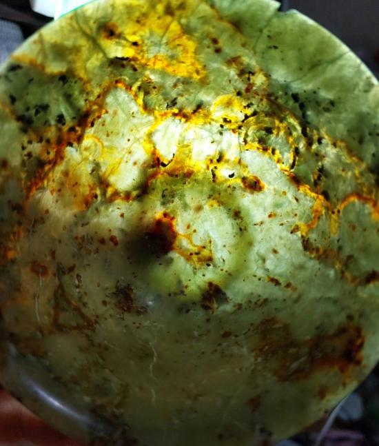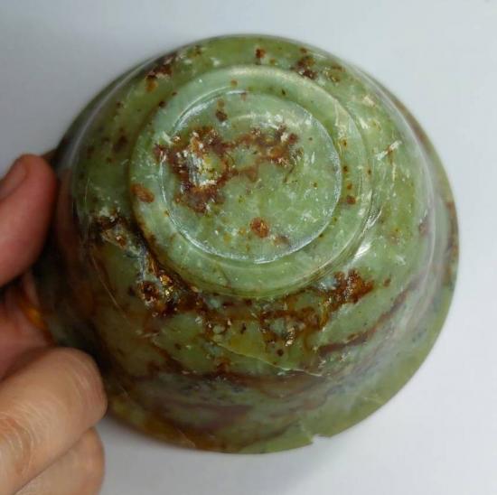 ถ้วยหยกขนาด 4 นิ้ว สูง2 นิ้ว มีปิ่น1จุด มีสายแร่ทั้งใบ |