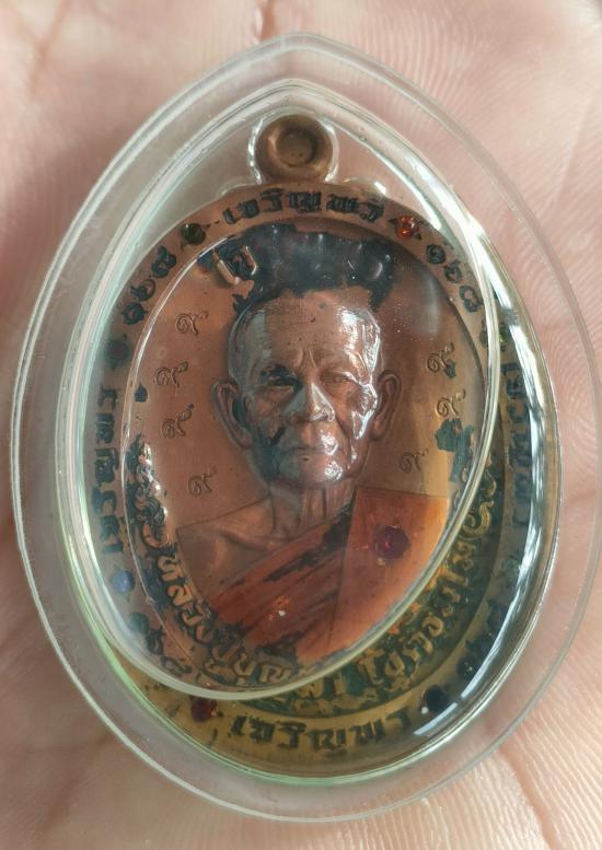 เหรียญเจริญพร ๒ขอบ ฉลอง๗รอบ ที่ระลึกสร้างอุโบสถ หลวงปู่บุญมา โชติธัมโม วัดเขาแก้วทอง จ.ปราจีนบุรี เนื้อตะปูสังฆวานร ลงยาจีวร ตอก๙รอบ ฝังพลอยรอบ ขอบเจริญพร๑๖๘ เลี่ยมกรอบแช่ว่านน้ำมันเสือ หมายเลข ๔ |