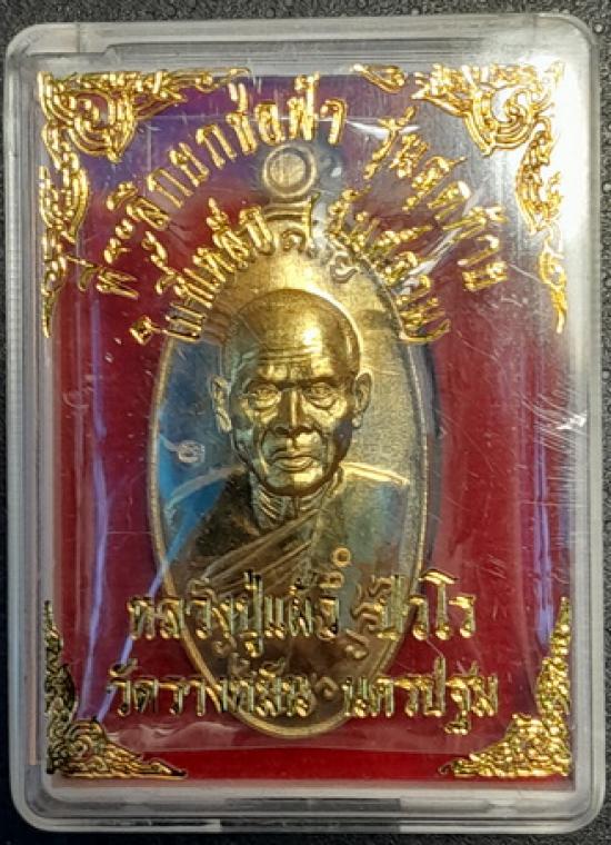 เหรียญใบขี้เหล็ก พิมพ์ใหญ่ หลวงปู่แผ้ว ปวโร วัดรางหมัน นครปฐม รุ่นสุดท้าย เนื้อทองฝาบาตร ปี56 พร้อมกล่องเดิมจากวัด |