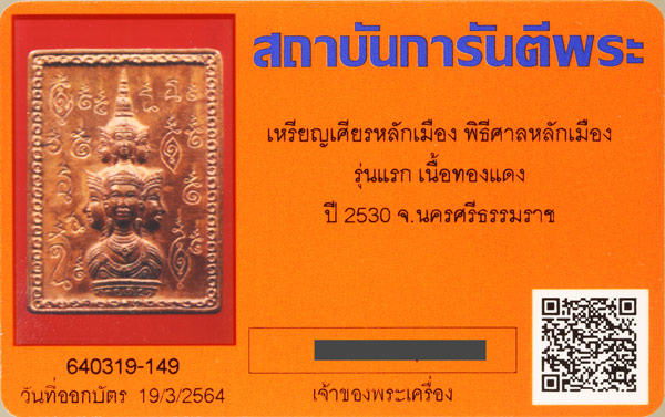 เหรียญเศียรหลักเมือง(รุ่นแรก) พิธีศาลหลักเมือง เนื้อทองแดง ปี2530 พิมพ์คมชัด ผิวสวยงาม สภาพสวยเดิมครับ...#2