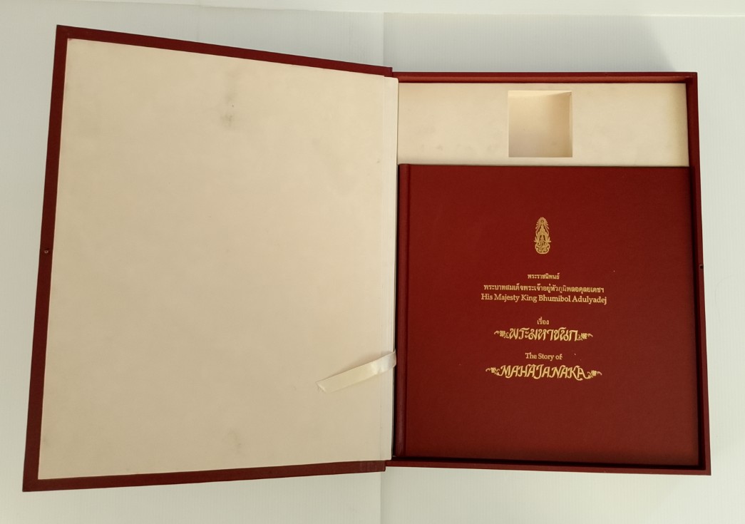 หนังสือพระมหาชนกเล่มใหญ่ ปกหนังอย่างดี เก็บรักษาอย่างดี สภาพสวยเดิมเก็บรักษาอย่างดี เข้าชุดกับเหรียญเพื่อเพิ่มมูลค่าและคุณค่า หายากมากแล้วครับ |