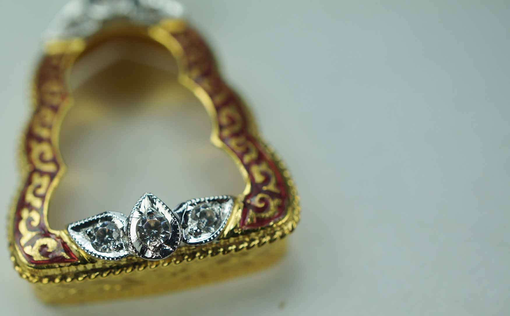 กรอบทองคำ ใส่พระปิดตาข้าวตอกแตก หลวงปู่ทิม ลงยาสีแดง ห่วงเพชร ฝังเพชร CZ 8 เม็ด ข้างเกลียวโปเต้ งานขึ้นมือ น้ำหนัก 2.65 กรัม เปอร์เซ็นต์ทอง 65-70 เปอร์เซ็นต์ รับประกันตามกฏการันตีพระทุกข้อกำหนด ยินดีจ |
