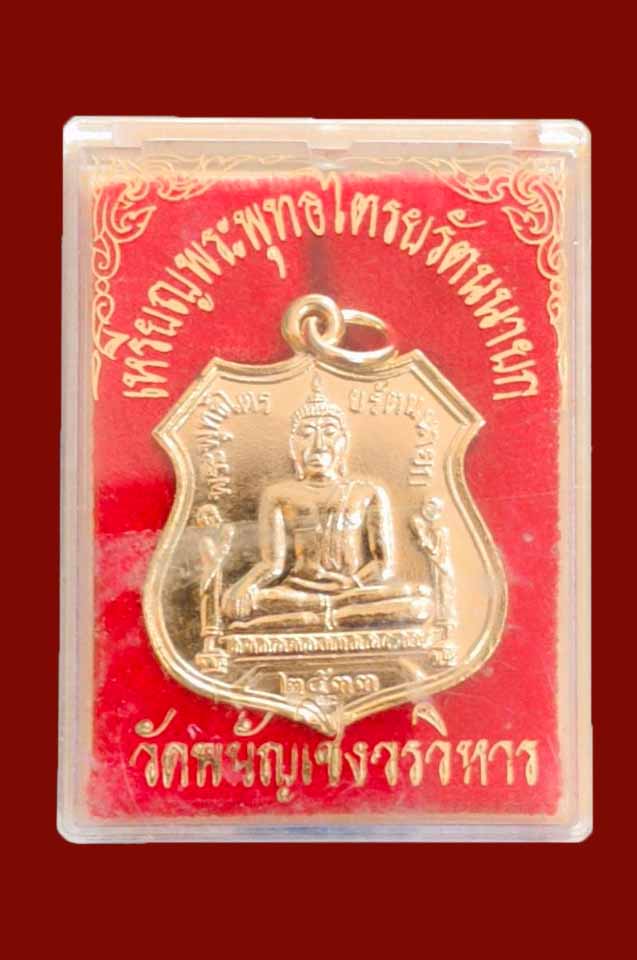 เคาะเดียว 100 เหรียญพระพุทธไตรยรัตนนายก วัดพนัญเชิง เนื้อทองแดง กะไหล่ทอง ปี2533 จ.พระนครศรีอยุธยา พร้อมกล่อง |
