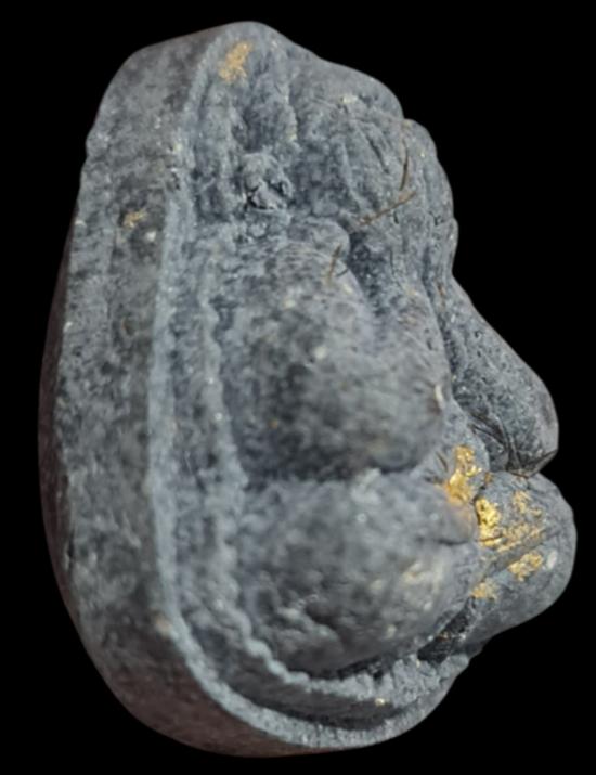 พระปิดตาปุ้มปุ้ย หลวงปู่ม่น วัดเนินตามาก จ.ชลบุรี เนื้อว่านใบลานผสมเส้นเกศา หลังฝังพลอยเสก ปี 2536 ผสมผงเก่าหลวงปู่ทิม วัดระหารไร่ |