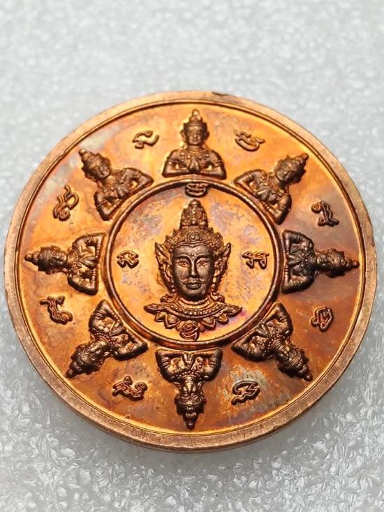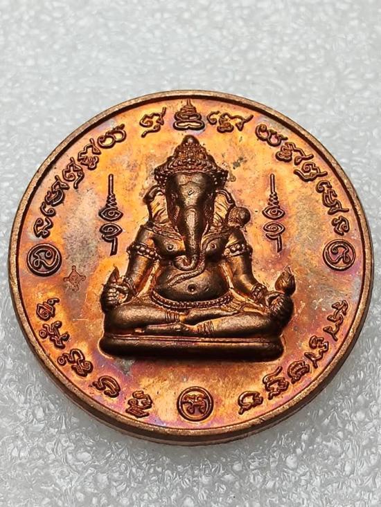 เคาะเดียวแดง.....เหรียญพระพิฆเนศ 9 เทวามหาจักรพรรดิ เนื้อทองแดงผิวไฟ วัดถลุงทอง ปี 2547 |