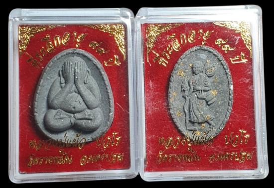 ยกคู่2องค์ พระพิมพ์ปิดตาและพระสิวลีเนื้อผงใบลาน หลวงปู่แผ้ว ปวโร วัดรางหมัน ที่ระลึกอายุ99ปี |