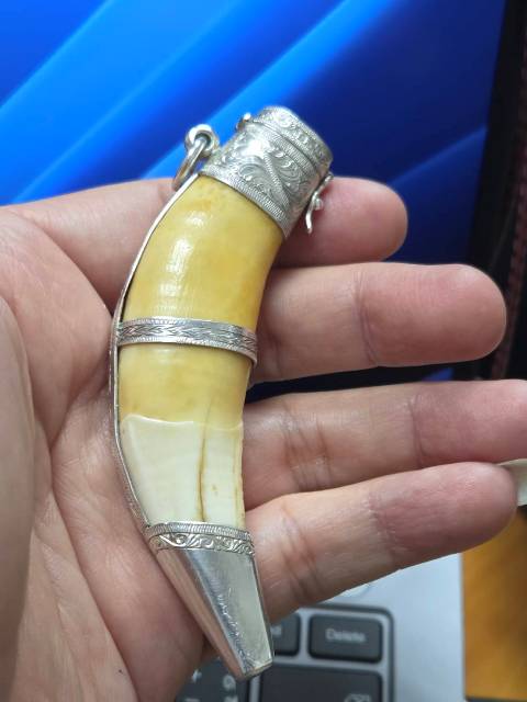เครื่องราง เขี้ยวเสือแท้ ขนาด 3.6นิ้ว เขี้ยวบน เขี้ยวโปร่งเก่า เลี่ยมเงินสั่งทำสวยๆครับ