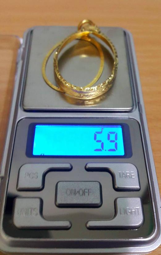 กรอบทองคำแท้ ทรงเหรียญรูปไข่ ยกซุ้มหัวสิงห์ น้ำหนักประมาณ 5.9 กรัม เปอร์เซ็นสูง 83.88%