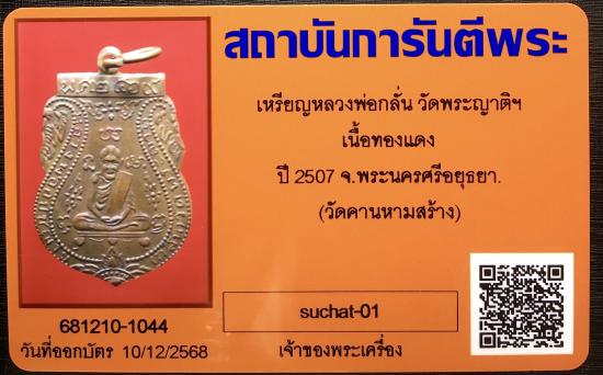 เหรียญหลวงพ่อกลั่น วัดพระญาติฯ เนื้อทองแดง ปี 2507 จ.พระนครศีอยุธยา วัดคานหามสร้าง |