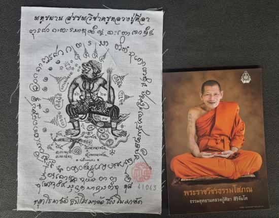 วัดใจ.. ผ้ายันต์ พหูรมาน 1 ผืน + รูปภาพสี หลวงปู่มหาศิลา หลวงปู่ศิลา ปลุกเสก