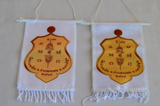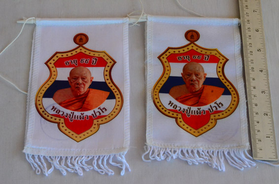 ผ้ายันต์แขวนหน้ารถ หลวงปู่แผ้ว วัดรางหมัน จ.นครปฐม อายุ99 ปี 2 ผืนสวยครับ |