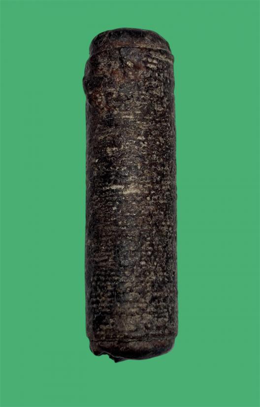 ตะกรุดไม้ไผ่ันเชือกลงรักเก่า ขนาด เส้นผ่าศูนย์กลาง 2 ซม ยาม 6 ซม ไม่ทราบที่ เคาะเดียว |