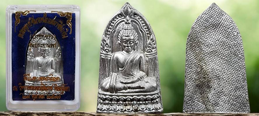 พระพุทธชินราชใบเสมา รุ่นประทานพร เนื้อชินเงิน หรือเนื้อปรอทขาว จัดสร้างขึ้นในปี 2547 มาพร้อมกล่องเดิมจากวัดครับ