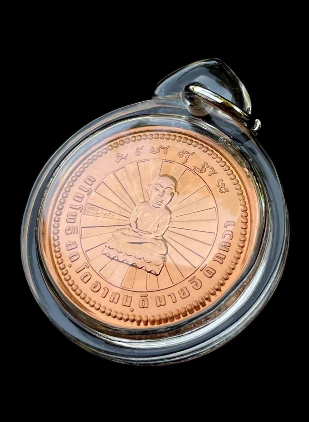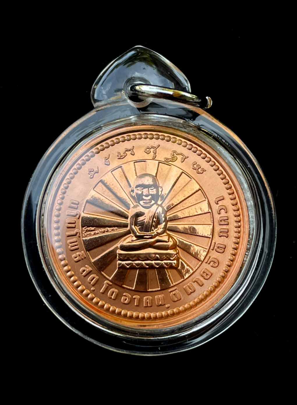 ด้านหลังเหรียญ เป็นบทสวด นะโม โพธิสัตโต อาคันติมายะ อิติภัควา