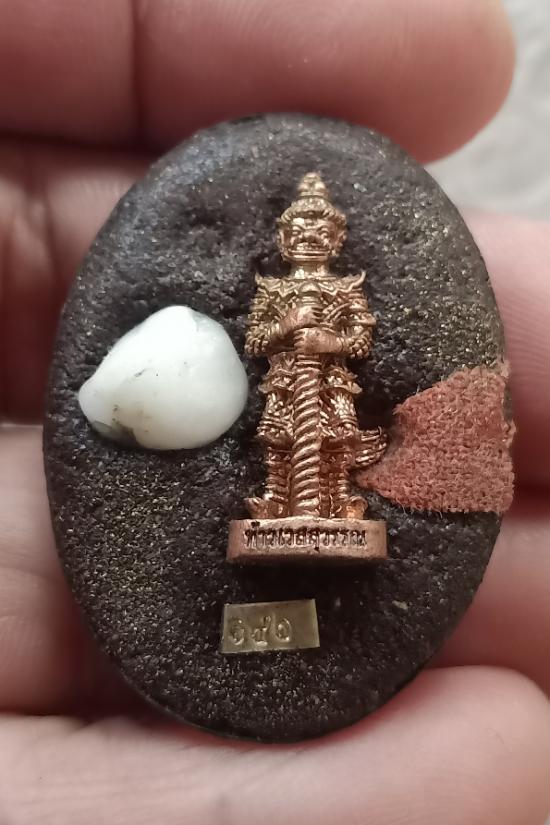ล็อกเก็ตจัมโบ้ฉากทอง ด้านหลังฝังท้าวเวสสุวรรณ พลอยเสก จีวร ข้าวสารหิน หลวงปู่แสง ญาณวโร วัดป่าดงสว่างธรรม ยโสธร รุ่นศรัทธาธรรม |