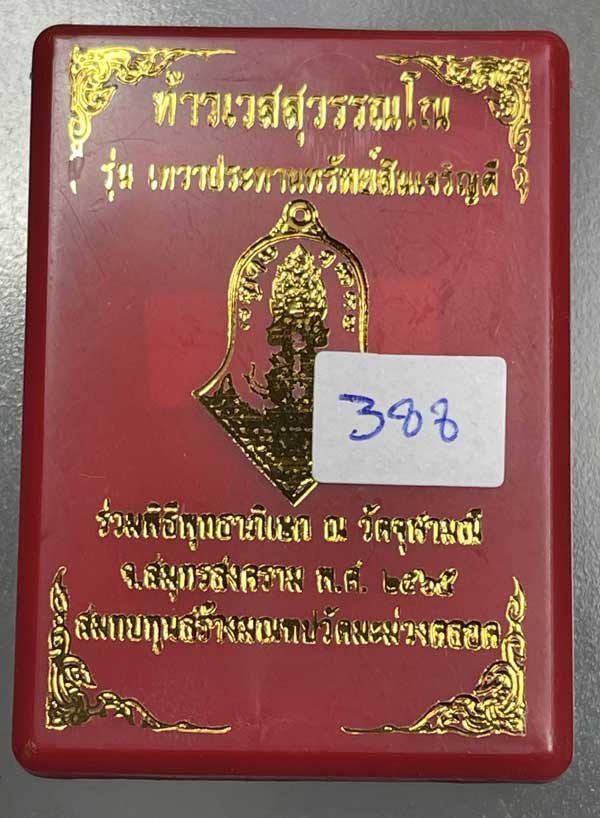 เหรียญท้าวเวสสุวรรณทรงจำปี รุ่น เทวาประทานทรัพย์สินเจริญดี หลวงพ่ออิฎฐ์ วัดจุฬามณี อุปถัมภ์ เนื้อทองแดงซาตินลงยาแดง 388 |