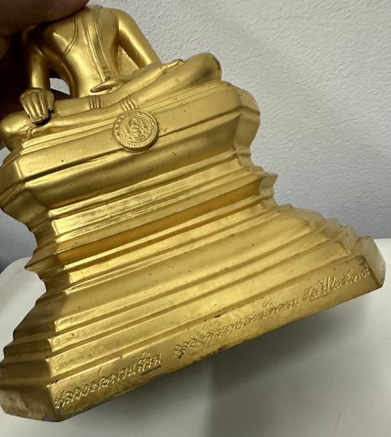 หลวงพ่อพระเสริม รุ่นฉลองศิริราชสมบัติครบ 50 ปี สร้างปี 39 เนื้อโลหะปิดทอง |