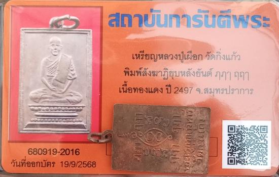 เคาะเดียวแดง++เหรียญหลวงปู่เผือก วัดกิ่งแก้ว ปี2497 พิมพ์สังฆาฏิยุบ นิยม หลังยันต์ครู เนื้อทองแดงผิวไฟ สวยเดิมพร้อมบัตรรับรองครับ