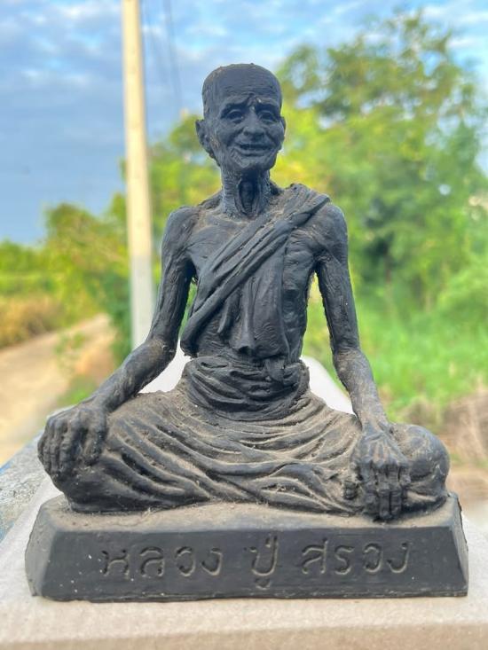 พระบูชา หลวงปู่สรวง(เทวดาเดินดิน)ขนาดหน้าตัก 5 นิ้ว สร้างน้อย เนื้อเรซิ่น สภาพสวย ปี 2552 รุ่นชักธงรบ ฝังผงพุทธคุณผสมธนาบัติ ติดจีวร ผ้าขาวของท่าน พิธีดี เจตนาดี สร้างที่ จ.อุบลราชธานี |
