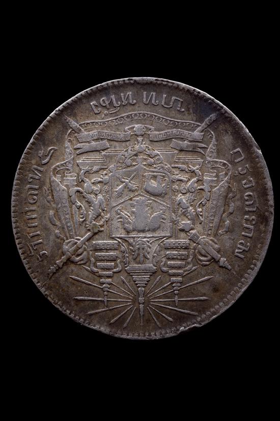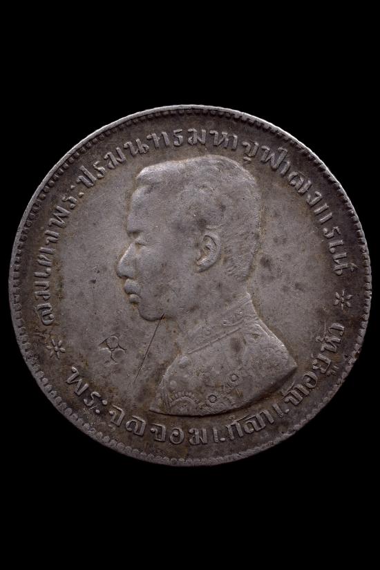 เหรียญพระจุลจอมเกล้าเจ้าอยู่หัว สมเด็จพระปรมินทรมหาจุฬาลงกรณ์ รัชกาลที่5 กรุงสยาม บาทหนึ่ง มีตอกโค๊ต |