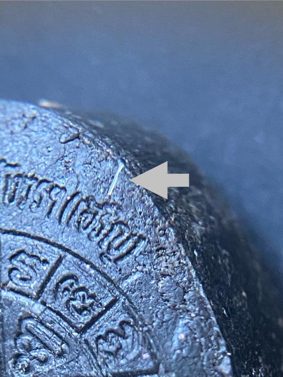 พระปิดตายันต์ดวงเล็ก ปี2523 สมเด็จพระญาณสังวร (เจริญ) วัดบวรนิเวศ_(เนื้อผงใบลานดำปลดหนี้)_มีเส้นเกศา_พิมพ์หนา_ |