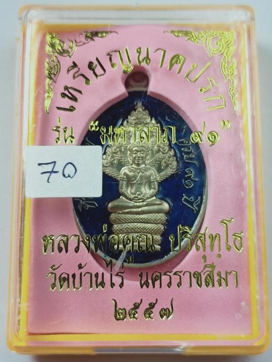 เหรียญนาคปรก หลวงพ่อคูณ มหาลาภ91 เนื้ออาปาก้าลงยาสีน้ำเงิน เบอร์ 70 พร้อมกล่องครับ |
