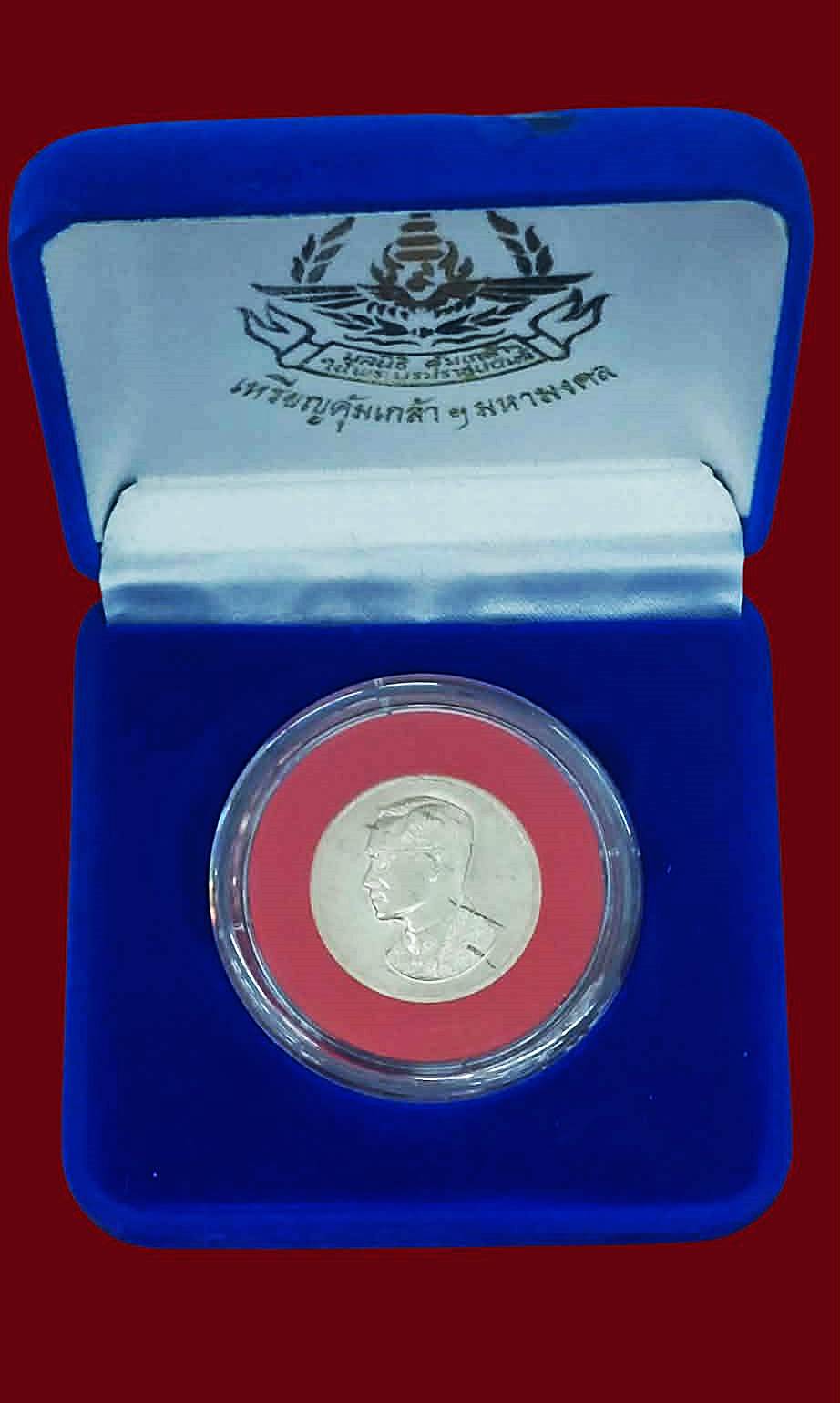 เหรียญคุ้มเกล้า รัชกาลที่ 9 พิมพ์ใหญ่ เนื้อเงิน ปี 2522 ผิวสวยธรรมชาติ มาพร้อมตลับและกล่องกำมะหยี่เดิมๆ ครบสมบูรณ์ |