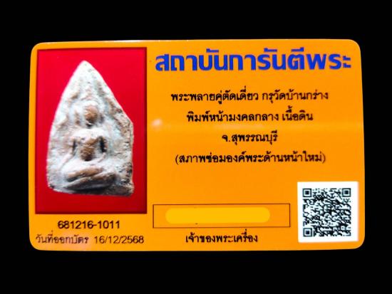 พระพลายคู่ตัดเดี่ยว กรุวัดบ้านกร่าง พิมพ์หน้ามงคลกลาง เนื้อดิน จ.สุพรรณบุรี พร้อมบัตรG-PRA