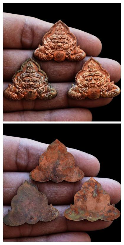 ชุด 6 องค์...เหรียญพระราหูอุ้มชูดวงชะตา เนื้อทองแดง + เนื้อนวะโลหะ เบอร์ ๕ + ๑๓๗ + ๖๑ ด้านหลังจารยันต์ ปี 2556 หลวงปู่สมชาย วัดคงคา จ.กาญจนบุรี รุ่นนี้ปลุกเสกปิดท้ายก่อนออกให้บูชา โดยพระเกจิอาจารย์ 5 รูป คือ เจ้าคณะจังหวัดกาญจนบุรี (จุดเทียนชัยนั่งปรก) , หลวงพ่อชำนาญ วัดบางกุฏีทอง , หลวงปู่เพิ่ม วัดป้อมแก้ว , พระครูน้อย วัดชัยมงคล , หลวงปู่สมชาย วัดคงคา (ดับเทียนชัย) พร้อมซองรูปเดิมจากวัด สภาพพระตามรูปที่ลงทุกประการ (ขนาดประมาณ 3.2 x 2.7 ซม.)