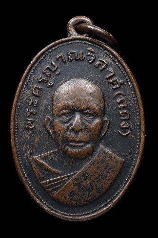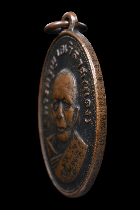 เหรียญหลวงพ่อแดง วัดเขาบันไดอิฐ รุ่นแจกแม่ครัว บล๊อคไหล่จุดเนื้อทองแดงรมดำ เดิมๆ