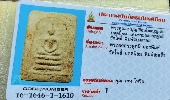 พระผงกระดูกผีวัดโพธิ์พิมพ์สมเด็จมีลายผ้า พร้อมใบประกวดติดที่ 1