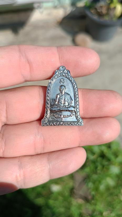 เหรียญระฆังหลวงพ่อเกษม เขมโก หลังตรากาญจนาภิเษกเนื้อทองแดงกะไหล่เงินปี 2538 |