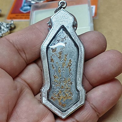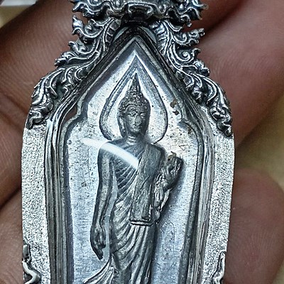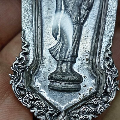 พระพุทธ 25 ศตวรรษ เนื้อชินปรอท (พิมพ์นิยม มีเข็ม) พร้อมเลี่ยมกรอบเงินแท้ งาน 92.5% ขึ้น งานมือหนึ่ง กรอบหนา รมดำ สวยๆ classic. |