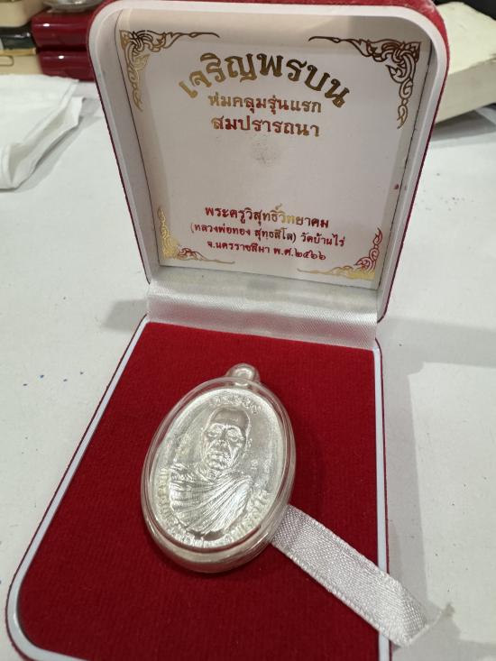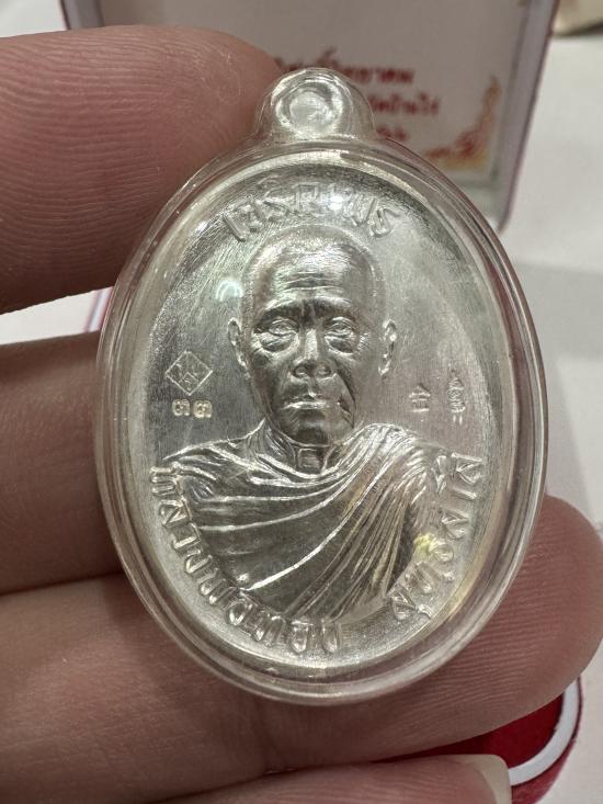 (เลขสวย 33) เหรียญเจริญพรบน ห่มคลุม รุ่นแรก สมปรารถนา ปี2566 เนื้อเงิน no.33 มีกล่อง หลวงพ่อทอง วัดบ้านไร่