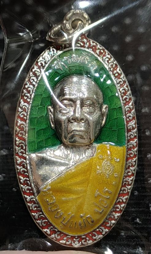 | เหรียญใบขี้เหล็ก รุ่น "ส.ธ. ใบขี้เหล็กหลวง" หลวงปู่แผ้ว ปวโร วัดประชาราษฎร์บำรุง(รางหมัน) อ.กำแพงแสน จ.นครปฐม เนื้อเงินลงยาเขียว เลข 1341 กล่องเดิม |