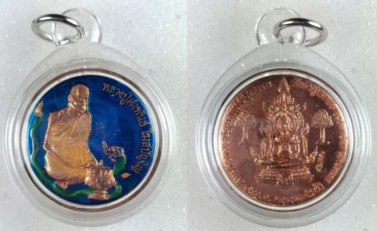 -เหรียญหลวงปู่คำพันธ์ รุ่นสมเด็จองค์ปฐมพุทธอุทยาน ลงยาสีสวยเดิม เลี่ยมพลาสติกพร้อมใช้ จำนวน 1 องค์