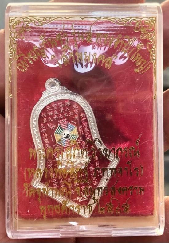 เหรียญกันชง ทรงจำปี หลวงพ่ออิฏฐ์ วัดจุฬามณี จ.สมุทรสงคราม เนื้อเงินพิมพ์ใหญ่ ลงยาสีแดง ซีลเดิมกล่องเดิม