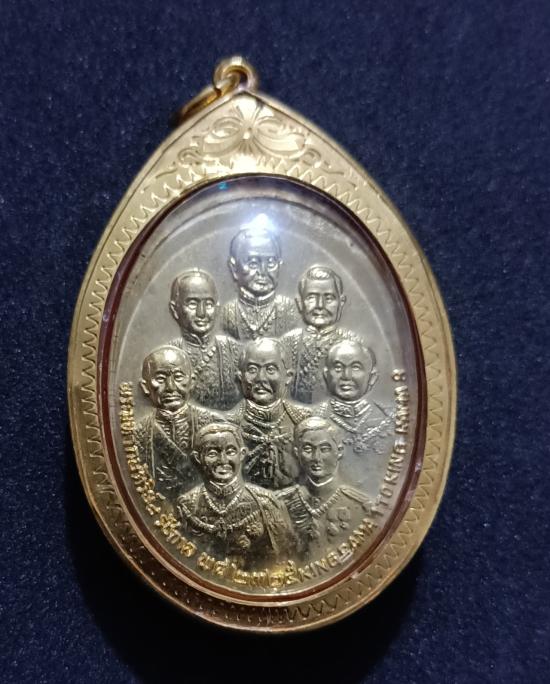 เหรียญ ร9 เนื้อกระไหล่ทอง หลัง8รัชกาล เลี่ยมทอง
