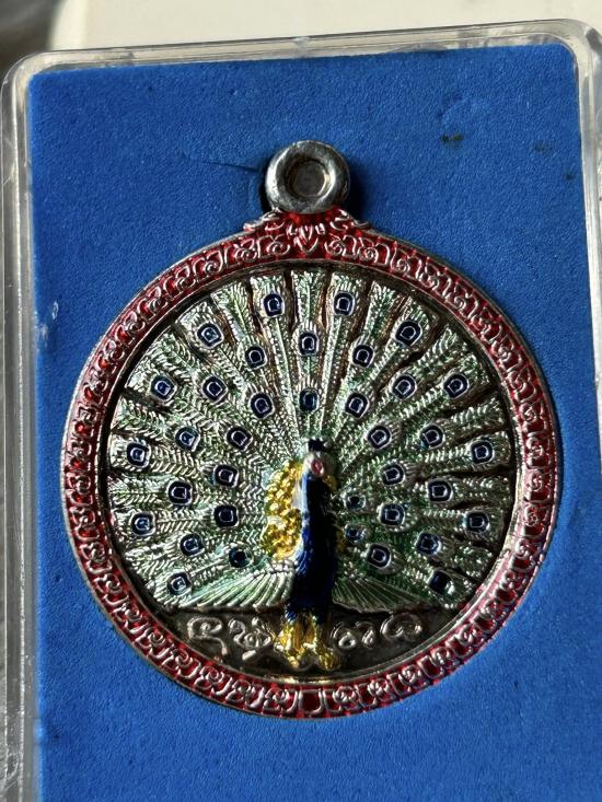 วะดใจ..100 เหรียญนกยูงทองเรียกทรัพย์ เนื้อทองขาวลงยาสี รุ่น สิทธมหามงคล ๙๑ ครูบาสิทธิ วัดปางต้นเดื่อ |