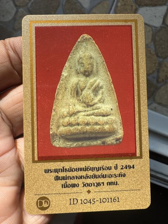 พระพุทโธน้อย แม่ชีบุญเรือน พิมพ์กลาง หลังยันต์ นะอะระหัง เนื้อผง พร้อมบัตรเพื่อนบ้าน