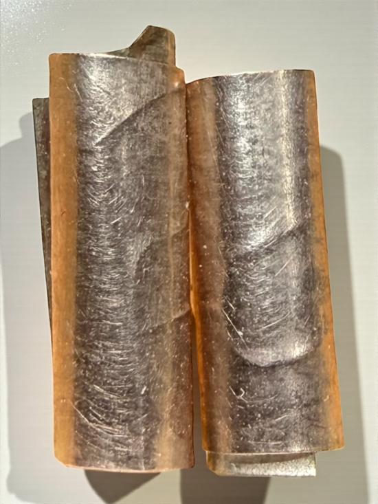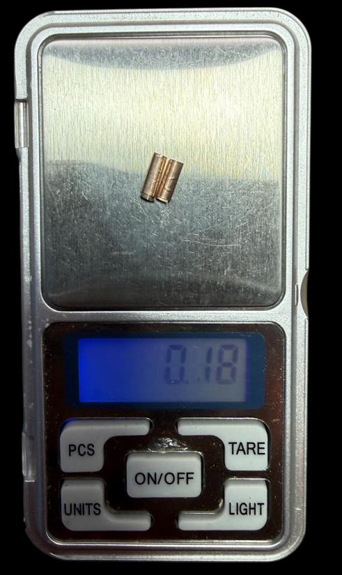 ตะกรุด"คู่" นาคแท้ ไม่ทราบที่ มากับใบเช็ค % ทองคำ มีทองคำ 29.3% มีรอยจาร ขนาด 1 ซม. หนักรวม 0.18 กรัม |