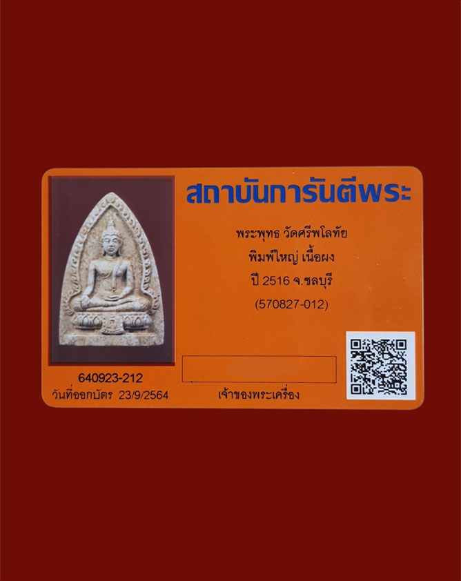 พระผงพระพุทธ พิมพ์ใหญ่ วัดศรีพโลทัย จ.ชลบุรี ปี2516+บัตรการันตี... |