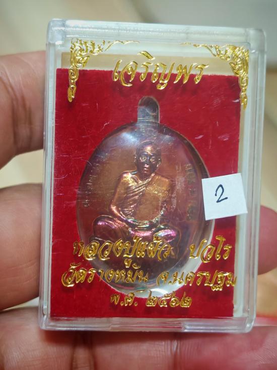 เหรียญเจริญพรบน หลวงปูแผ้ว ปวโร เนื้อทองแดง สภาพสวยครับ พร้อมกล่อง (2)